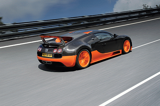 The Bugatti Veyron 16.4 Super Sport achieved a new landspeed world record for production cars, on the proving grounds of the Volkswagen Group at Ehra-Lessien, Germany. In the presence of a representative of Guinness Book of Records the Super Sport achieved an average top speed of 431 km/h (Image: Bugatti S.A.S.)